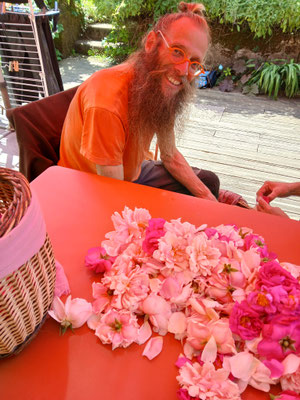 Comme nous l'avons vu auparavant, nous faisons sécher une bonne partie des plantes que nous récoltons. Le séchage se fait à basse température ce qui permet de ne pas altérer les propriétés des PAM. Par la suite, nous faisons place à nos talents d'herboristes ! Nous concoctons différentes tisanes, sirops, vinaigres, sels aromatiques, mais aussi des produits de soins, tels que : baumes, huiles, laits nettoyants ...
